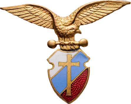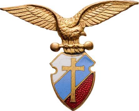 Členský odznak b.l., Nesign., částečně smaltovaný bronz 37x28 mm se zavíracím špendlíkem