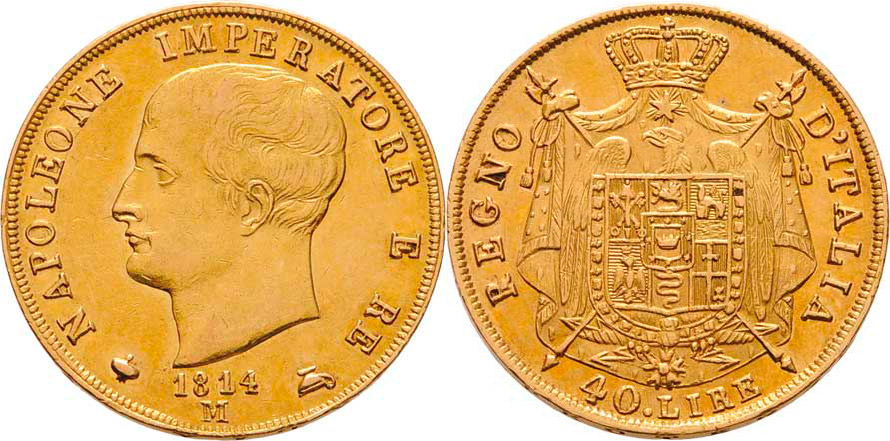 40 Lira 1814 M, Milano, Cr.12 (Au900), 12.865g, dr.hr., nep.rysky, pěkná patina