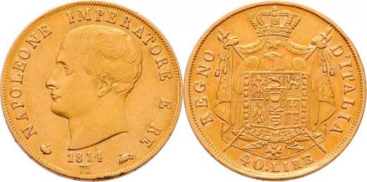 40 Lira 1814 M, Milano, Cr.12 (Au900), 12.825g, dr.hr., nep.rysky, pěkná patina