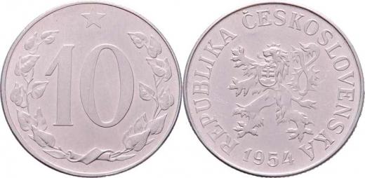 10 Haléř 1954, 1.164g, nep.hr., nep.rysky, pěkná patina, téměř
