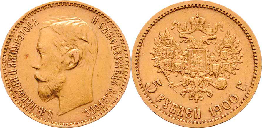 5 Rubl 1900 FZ, Y.62 (Au900), 4.288g, nep.hr., nep.rysky, pěkná patina