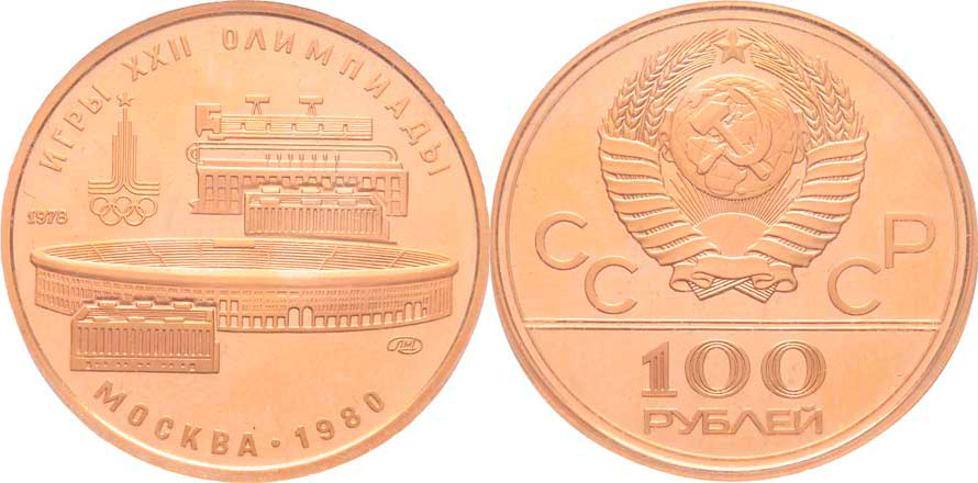 100 Rubl 1978 LMD - LOH - stadion Lužniky, Y.151 (Au900, 17.28g, 45.000 ks), poškrábaná kapsle