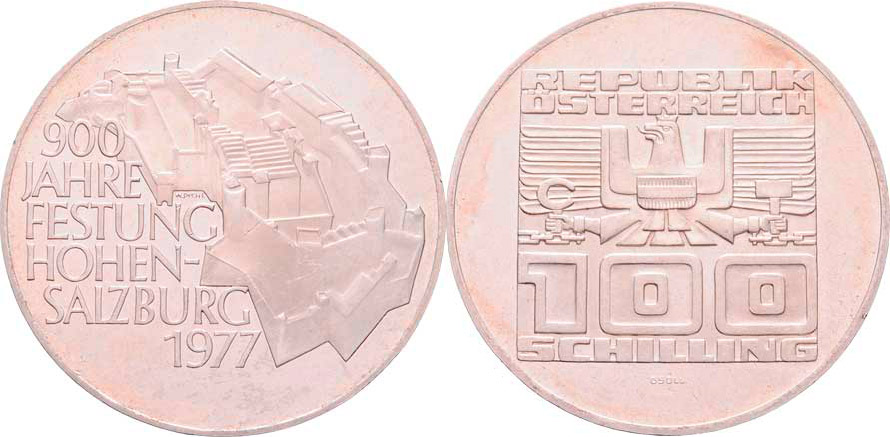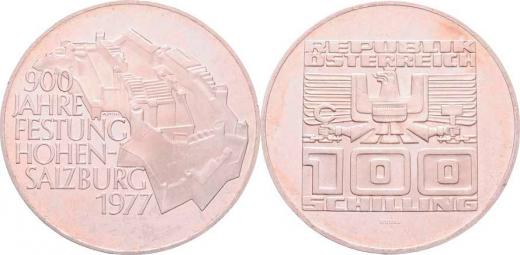 100 Šilink 1977 - Salzburg, KM.2935 (Ag640, 23.93g), nep.hr., dr.rysky, skvrnky