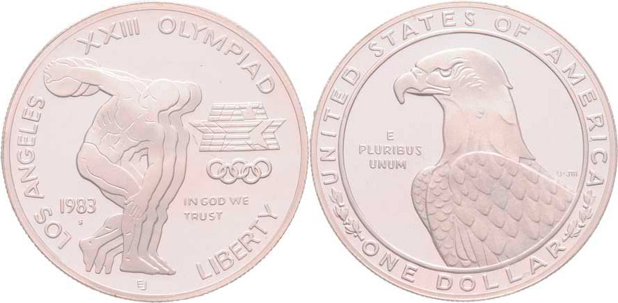 Dolar 1983 S - LOH Los Angeles 1984 - diskobolos, KM.209 (Ag900, 26.73g), kapsle