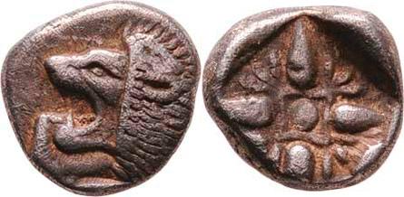 AR 1/12 Statéru, lví hlava zleva / hvězdicovitý ornament v inkusním čtverci, podobná jako SG.3533, 0.942g, pěkná patina