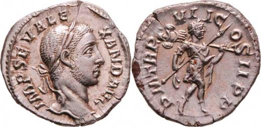 AR Denár, Rv:"PM.TR.P.VII.COS.II.P.P.", Mars kráčej. doprava, podobný jako S.2126, RIC.82 - mincov. Řím - ražba z roku 228, nep.exc., pěkná patina, téměř
