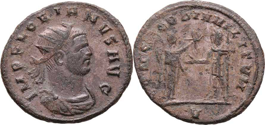 AE Antoninianus, Rv:"CONCORDIA.MILITVM.", císař a Concordia, S.neuvádí, RIC.116 - Cyzicus - 5.dílna - blíže nedatován, oválný střížek, pěkná patina R!
