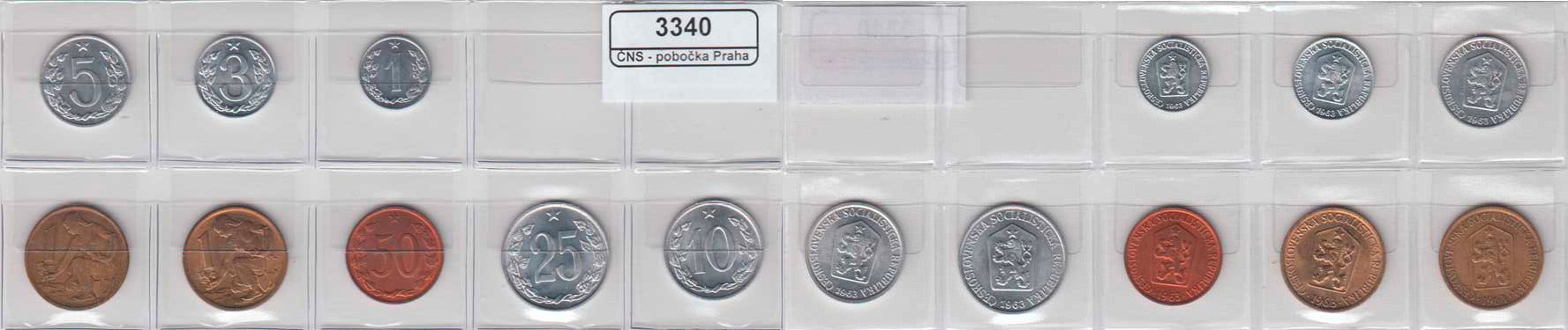 1 Koruna (dvě var. letopočtu), 50,25,10,5,3,1 Haléř, vše 1963 8ks
