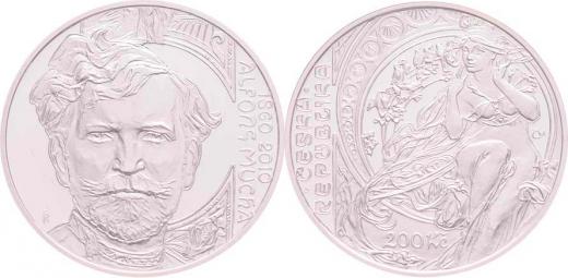 200 Kč 2010 - 150 let narození Alfonse Muchy, KM.114 (Ag900, 13.0g, 15.900ks), kapsle, etue, karta