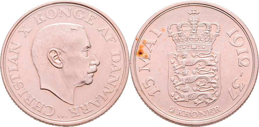 2 Koruna 1937 NS - 25 let vlády, KM.830 (Ag800), 14.974g, nep.hr., nep.rysky, skvrnka, téměř