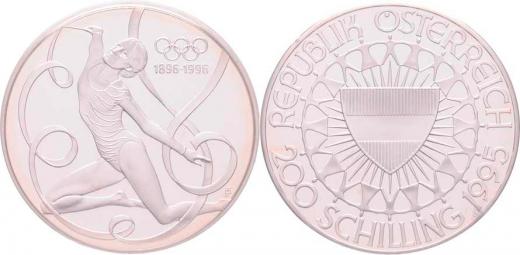 200 Šilink 1995 - 100 let Olympijských her - LOH, KM.3026 (Ag925, 33.63g, 100.000 ks), kapsle