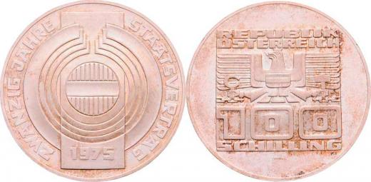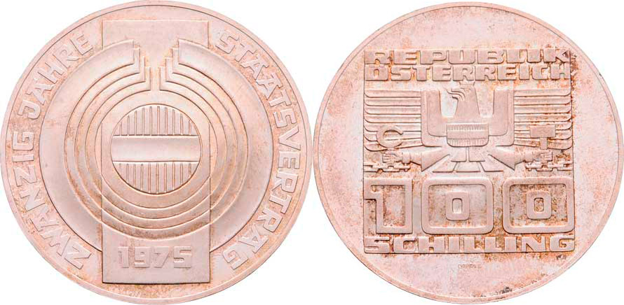 100 Šilink 1975 - státní smlouva, KM.2924 (Ag640, 23.93g), patina