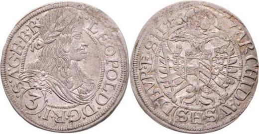 3 Krejcar 1667 SHS, Vratislav-Hammerschmidt, dělení opisů: "...R.I.(3).S.A.../...AV.(SHS).D.BVR.ET.SIL.", MKČ.1619, Nech.737, 1.700g, vada razidla R!