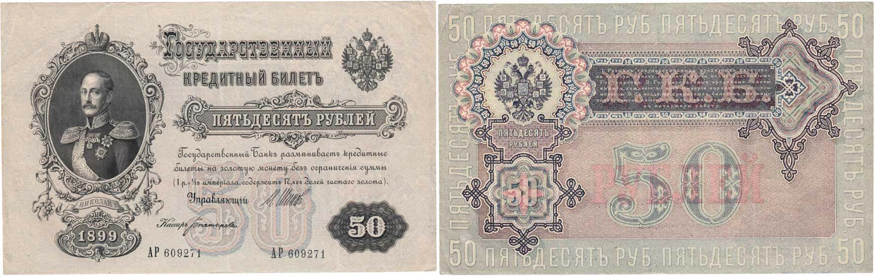 50 Rubl 1899, Pick.8d - Sign. Šipov / Bogatyrev