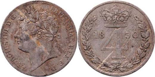4 Pence 1830, SCBC.3820, KM.684 (Ag925), 1.835g, nep.hr., nep.rysky, patina R!