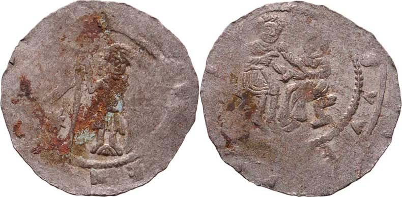 Denár, Ca.532, V-P.231 - v reversu vyražena pouze jedna hvězda, vyraženy malé části opisů, 0.551g, exc., skvrny, patina R!