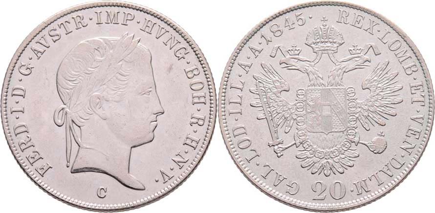 20 Krejcar 1845 C, Praha, 6.646g, nep.hr., nep.rysky, pěkná patina