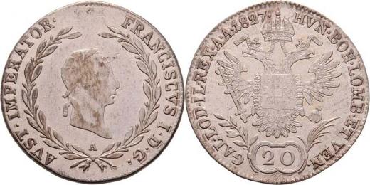 20 Krejcar 1827 A, Vídeň, 6.617g, nep.hr., nep.rysky, pěkná patina