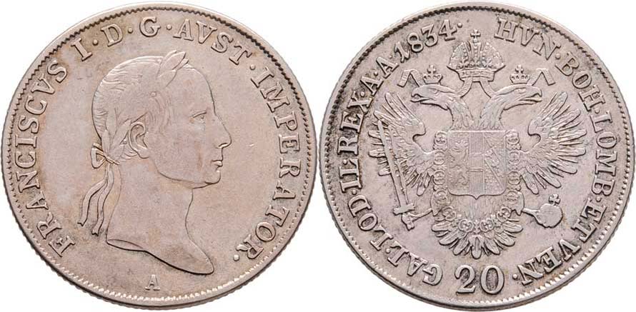 20 Krejcar 1834 A, Vídeň, 6.623g, nep.hr., nep.rysky, nep.just., pěkná patina