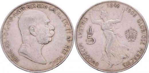 5 Koruna 1908 - jubilejní, 23.959g, dr.hr., dr.rysky, patina