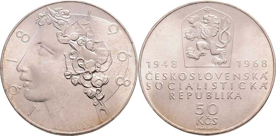 50 Kčs 1968 (Ag900) - Republika, patina, téměř