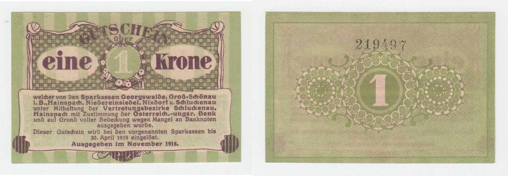 Georgswalde (Jiříkov), 1 Koruna 1918, D-H.51.1.2a, H-H.53.1.2a