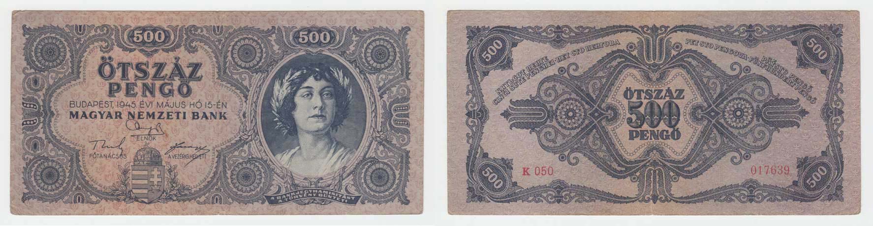 500 Pengö 1945, Pick.117x - chyba v ruském označení nominálu