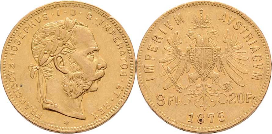 8 Zlatník 1875 (pouze 86.000 ks), 6.421g, dr.hr., nep.rysky, pěkná patina