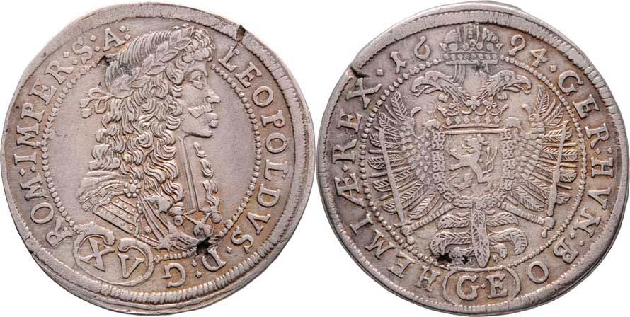 XV Krejcar 1694 GE, Praha-Egerer, Höll.94.3.2, Nech.1410b, Nech.155, 5.996g, vady materiálu, nep.napr.střížek, patina R!