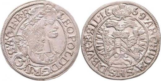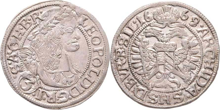 3 Krejcar 1669 SHS, Vratislav-Hammerschmidt, dělení opisů: "...R.I.(3).S.A.../...A.(SHS).D.BVR.E.SIL.", MKČ.1620, Nech.739, 1.635g, upravený rok z 1668, tém.