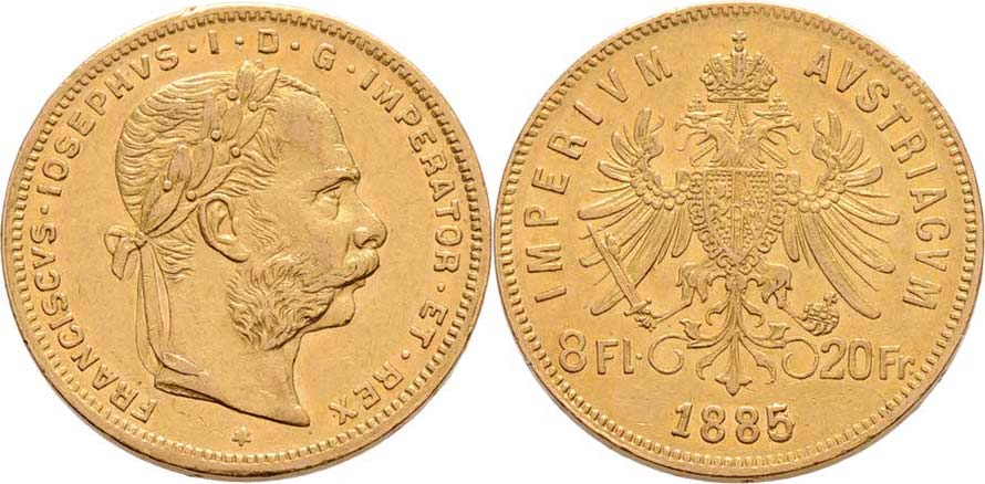 8 Zlatník 1885, 6.435g, dr.hr., nep.rysky, pěkná patina