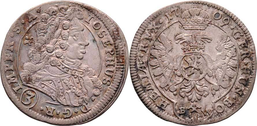 3 Krejcar 1709, K.Hora-Wohnsiedler, J.3b, MKČ.1731, 1.689g, nep.exc., nep.nedor., pěkná patina