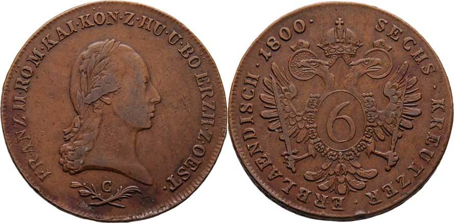 Cu 6 Krejcar 1800 C, Praha, 14.648g, dr.hr., nep.rysky, pěkná patina