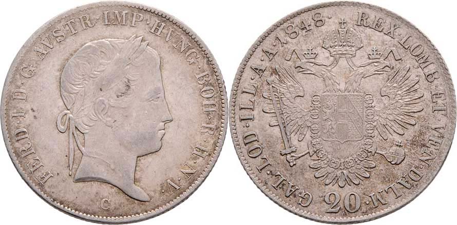20 Krejcar 1848 C, Praha, 6.636g, nep.hr., nep.rysky, pěkná patina
