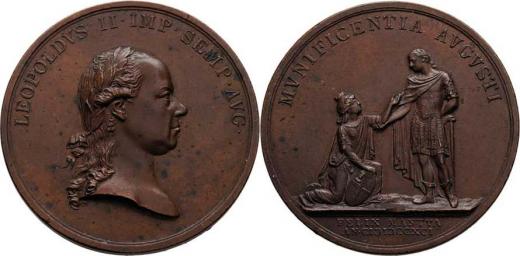 Vinazer - AE medaile na holdování v Mantově 1791 - poprsí zprava, opis / holdovací scéna a písmo, Sign., 44mm, 34.822g, Nov.N.1b, M.2250, skvrnky, pat., téměř