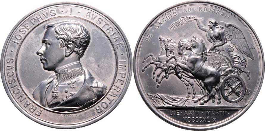 Lange - medaile na vítězství u Novary 23.3.1849 - poprsí zleva, opis / Victorie na quadrize doleva, písmo, Sign., postř.bronz 64 mm, jako M.2636, H.3745