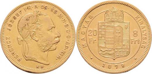 8 Zlatník 1879 KB, 6.424g, nep.hr., nep.rysky, pěkná patina, téměř