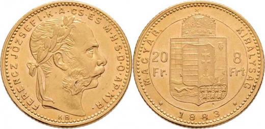 8 Zlatník 1883 KB, 6.437g, nep.hr., nep.rysky, nep.úhoz, pěkná patina