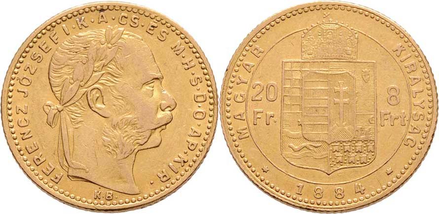 8 Zlatník 1884 KB, 6.419g, nep.hr., nep.rysky, pěkná patina