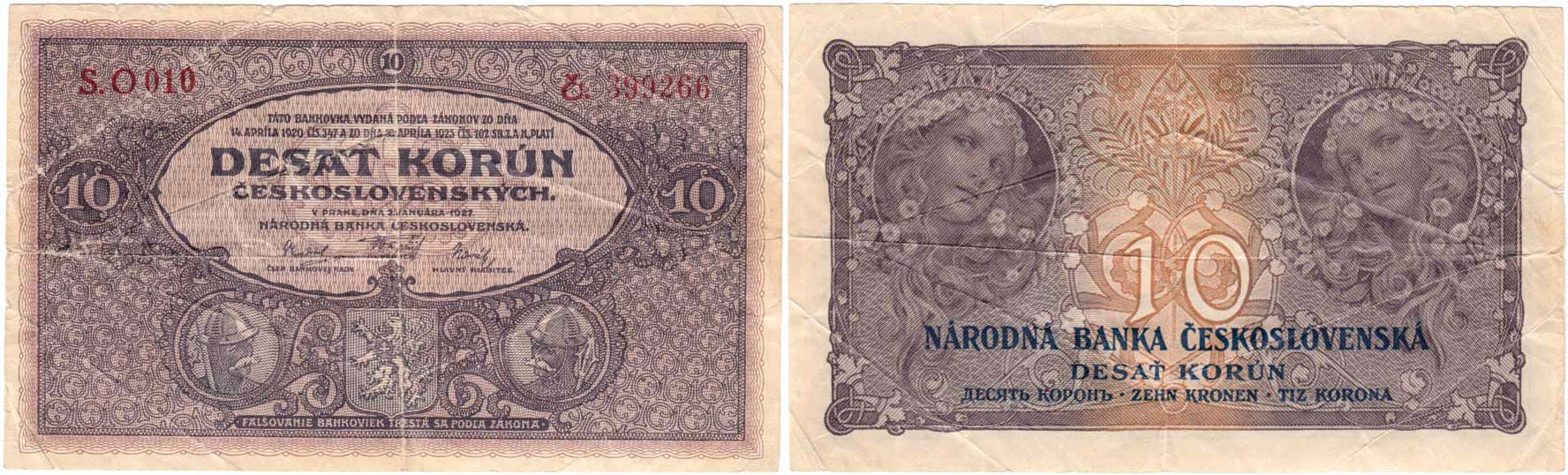 10 Koruna 1927, série O010, BHK.22a "neperf."