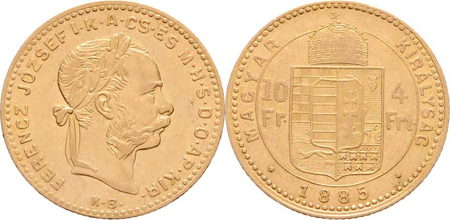 4 Zlatník 1885 KB (pouze 64.000 ks), 3.206g, nep.hr., nep.rysky, téměř R!