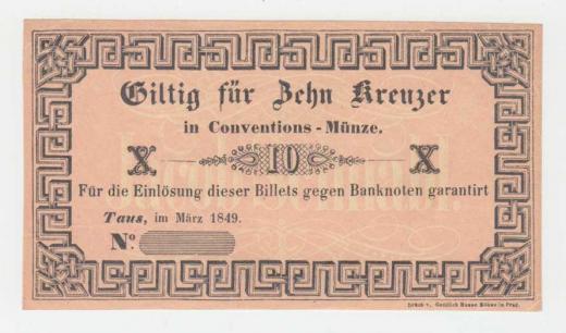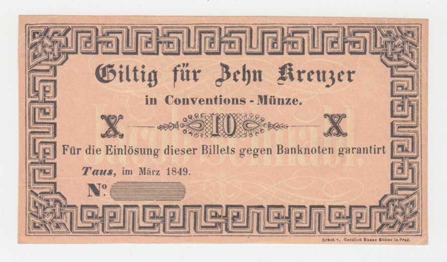 Taus (Domažlice) - Jacob Schnabl - 10 Krejcar C.M. 3.1849, V-R.1310.06.02.f, formulář