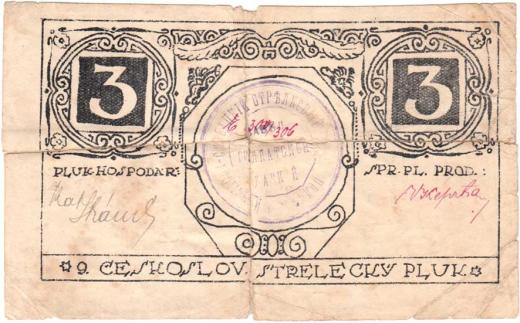 3 Rubl b.l. - 9.střelecký pluk Karla Havlíčka Borovského, číslo 300/306, dva podpisy, razítko RR!