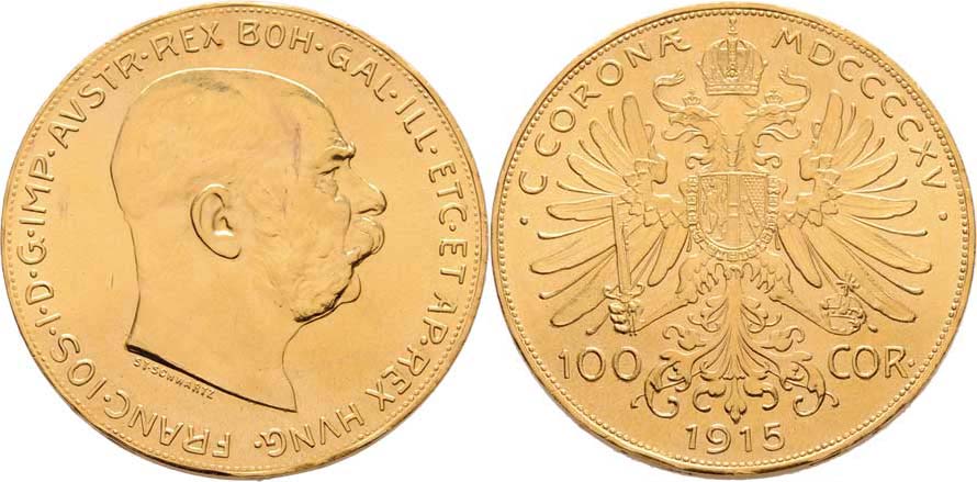 100 Koruna 1915 - novoražba, 33.893g, dr.hr.