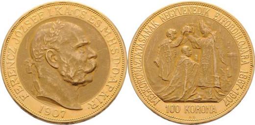 100 Koruna 1907 KB - jubilejní - původní ražba (pouze 11.000 ks), 33.884g, nep.hr., nep.rysky R!