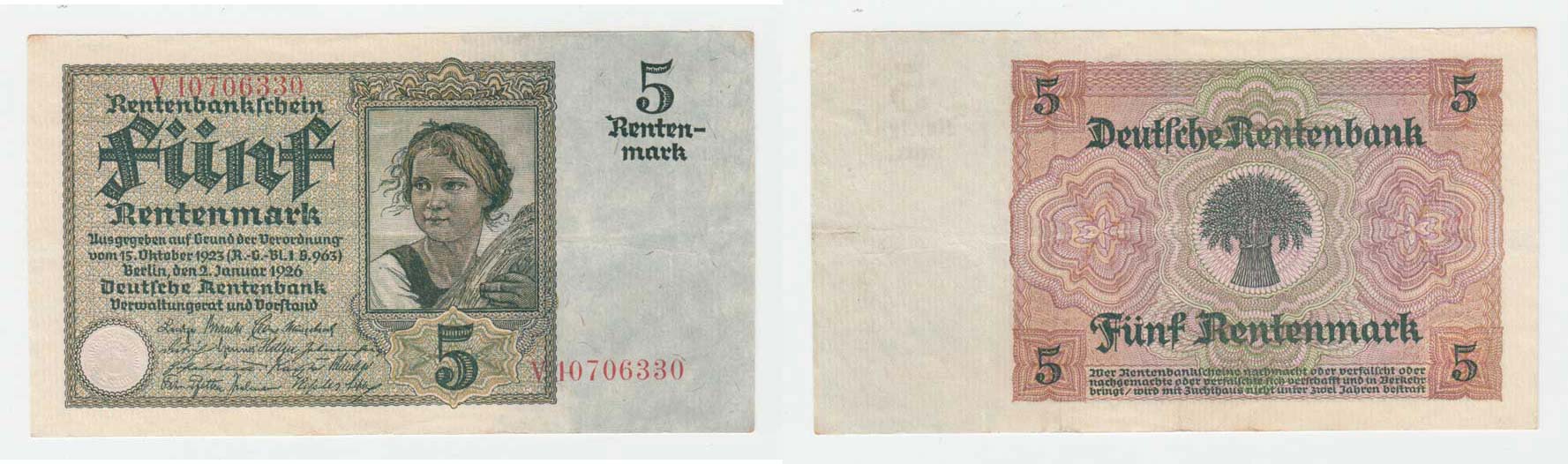 5 Rentenmarka 1926, Pick.169, Ros.164b - série V R!