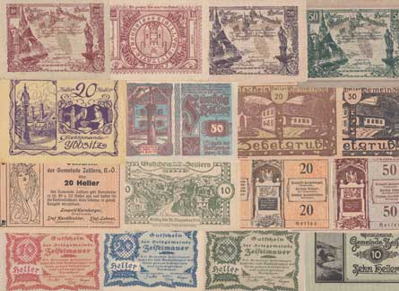 Sbírka rakouských nouzovek - města od písmene Y a Z, celkem 71 ks (některé kusy vícekrát), převážně zach.