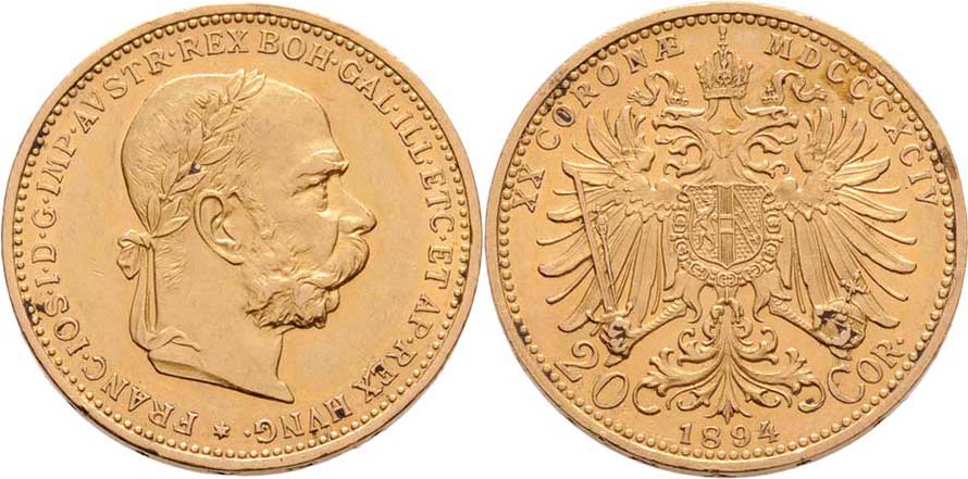 20 Koruna 1894, 6.762g, dr.hr., nep.rysky, skvrnky, patina
