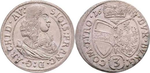 3 Krejcar 1664, Hall, M-A.163, 1.442g, nep.exc., nep.nedor., nep.rysky, téměř