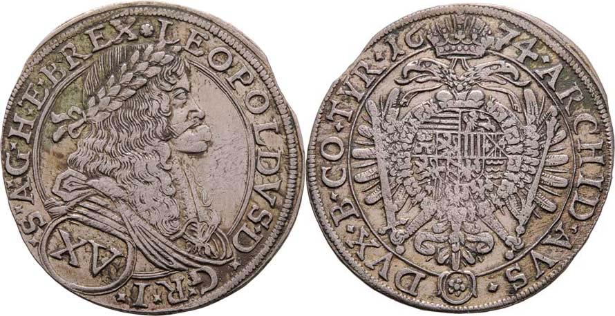 XV Krejcar 1674, Vídeň-Faber, Höll.74.1.7, M-A.173, Nech.1912, 5.310g, mírně exc., krajový střížek, pěkná patina